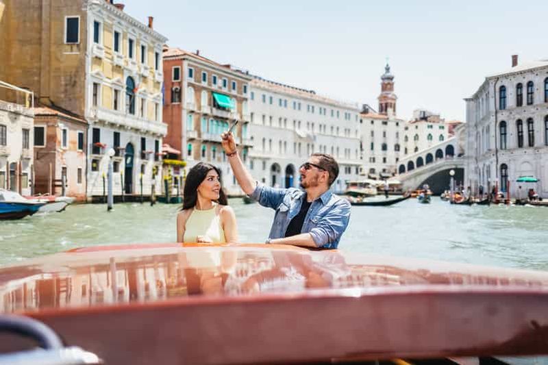 Rendez votre arrivée à Venise inoubliable avec un transfert en bateau-taxi vers votre hôtel ou le point accessible le pl...