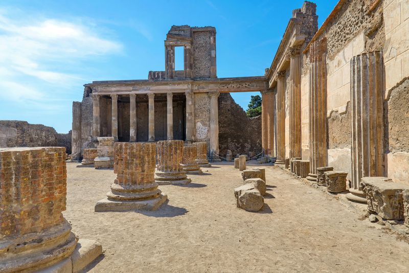 En 79 apr. J.-C., une éruption cataclysmique du Vésuve ensevelit Pompéi et Herculanum sous les cendres, laissant des vestiges remarquablement préservés. Ce drame historique illustre la redoutable puissance du volcan qui domine encore la région napolitaine aujourd’hui. À travers les fouilles, vous percevez le quotidien figé de ces cités romaines.
