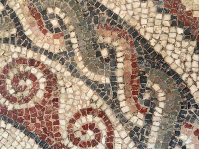 Le Péristyle majeur dévoile des mosaïques représentant motifs géométriques et scènes inspirées de la mythologie. Construit autour d’une cour intérieure agrémentée d’une fontaine, il reflète l’ingénierie romaine qui valorisait la circulation de la lumière. Ce lieu date également du début du IVe siècle et témoigne de la volonté d’impressionner les visiteurs.