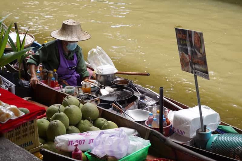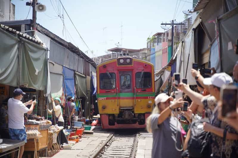 Visitez le marché ferroviaire de Maeklong et le marché flottant de Damnoen Saduak depuis Bangkok. Découvrez les remarqua...