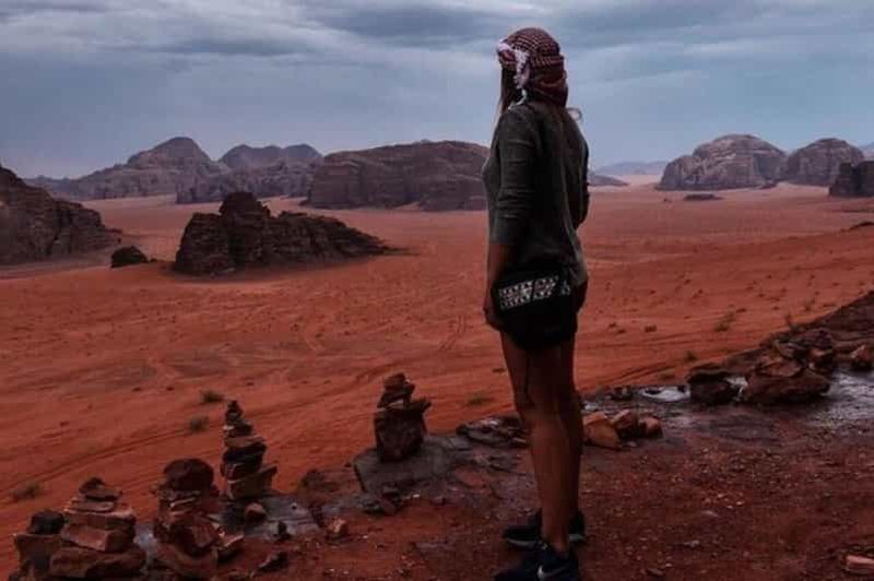 Cette option offre un transport privé vers Pétra et Wadi Rum, accompagné d'un chauffeur agréé et anglophone. Les billets d'entrée, un trajet en 4x4, les repas et un guide de la région ou un guide particulier peuvent être sélectionnés en utilisant l'option des suppléments.