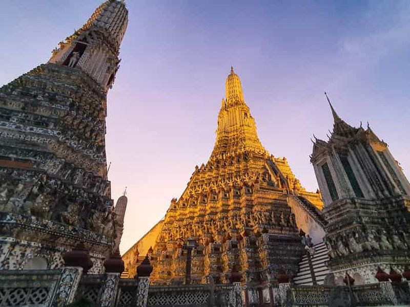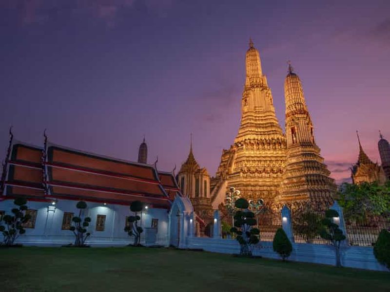 Le soir, évitez les foules et découvrez une autre facette de Bangkok. Visitez Wat Pho et Wat Arun, montez à bord d'un tu...