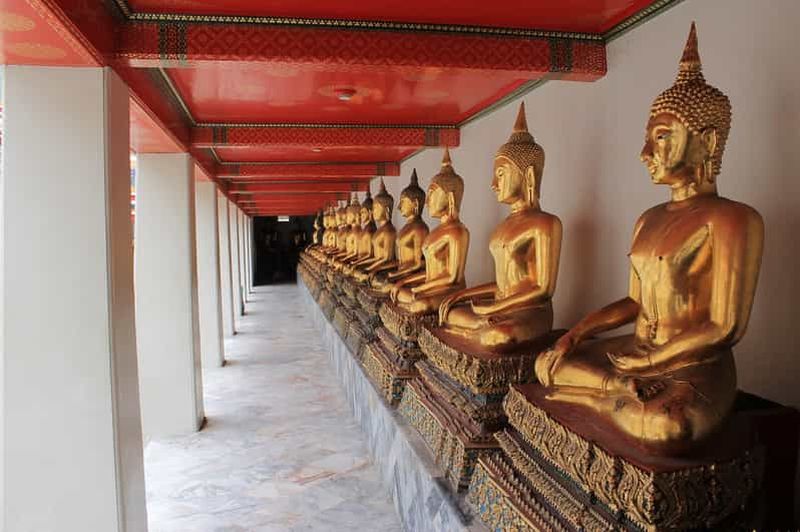Dans les galeries qui longent les cloîtres du temple, vous découvrirez plusieurs centaines de statues de Bouddha alignées avec soin. Majoritairement réalisées à l’époque d’Ayutthaya, elles témoignent du riche patrimoine artistique thaï. Entre poses méditatives et gestes d’apaisement, chaque statue ponctue votre parcours d’une atmosphère paisible. Ces galeries offrent également un abri bienvenu face à la chaleur de Bangkok, vous permettant d’explorer l’architecture traditionnelle et de contempler ces œuvres uniques.