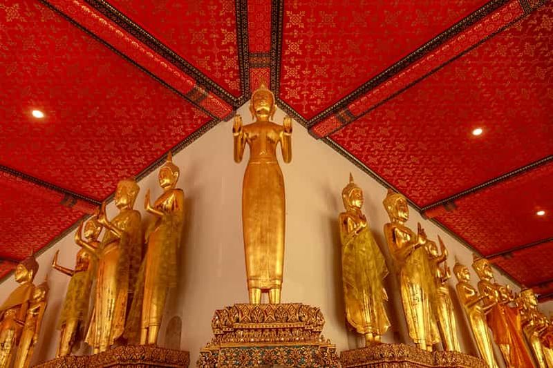 Dans les galeries qui longent les cloîtres du temple, vous découvrirez plusieurs centaines de statues de Bouddha alignées avec soin. Majoritairement réalisées à l’époque d’Ayutthaya, elles témoignent du riche patrimoine artistique thaï. Entre poses méditatives et gestes d’apaisement, chaque statue ponctue votre parcours d’une atmosphère paisible. Ces galeries offrent également un abri bienvenu face à la chaleur de Bangkok, vous permettant d’explorer l’architecture traditionnelle et de contempler ces œuvres uniques.