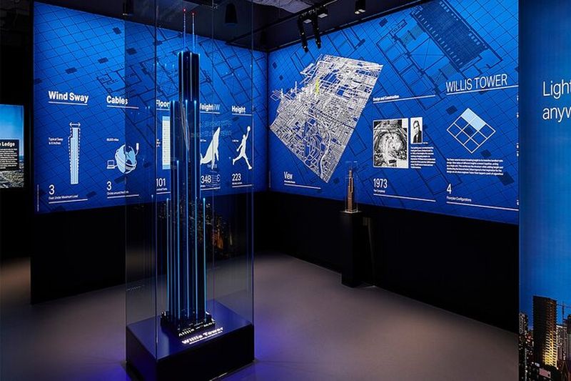 Immergées dans le corridor d’accueil, ces expositions plongent les visiteurs dans la construction historique de la tour, achevée en 1973. Vous découvrirez comment son architecture a redéfini l’horizon de Chicago et explorerez des archives numériques retraçant son évolution. Des modules ludiques mettent en lumière des anecdotes insolites, comme les techniques de résistance au vent. Vous serez captivé par une présentation dynamique qui rend tangibles les prouesses d’ingénierie de ce gratte-ciel.