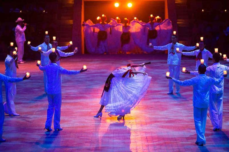 Tous les soirs, plus de 300 artistes se produisent sur scène pour célébrer l’histoire et la culture mexicaines. Ce spectacle flamboyant retrace les époques préhispaniques, l’influence coloniale et les traditions régionales, proposant un voyage sensoriel unique.