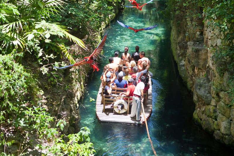 Plongez dans les célèbres rivières souterraines de Xcaret, formées par le réseau naturel de cenotes de la péninsule du Yucatán. Depuis 1990, le parc propose trois parcours aquatiques d’environ 600 mètres chacun, aux eaux cristallines parfaites pour la baignade. Vous pourrez aussi vous détendre sur les plages de sable blanc et explorer les criques secrètes.