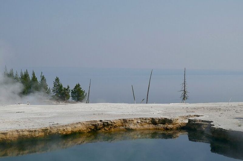 West Thumb Geyser Basin, niché sur la rive ouest de Yellowstone Lake, se distingue par ses bassins colorés et ses geysers en bordure d’eau. Il s’est formé dans l’ancien cratère d’une explosion hydrothermale survenue il y a plus de 100 000 ans. Les premières explorations remontent aux années 1870, lorsque les pionniers découvrent ses sources chaudes fumantes. Les cheminements surélevés permettent d’observer en sécurité la juxtaposition entre geysers et eaux limpides du lac.