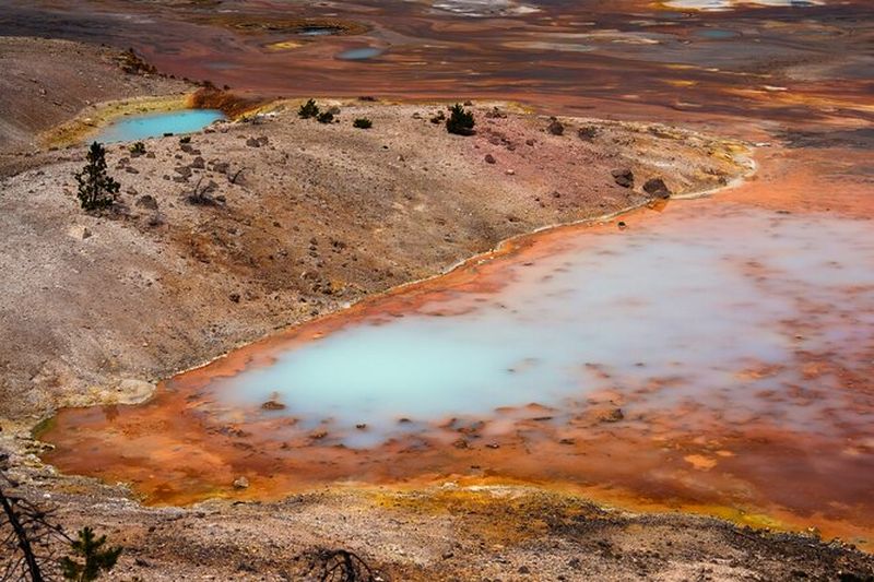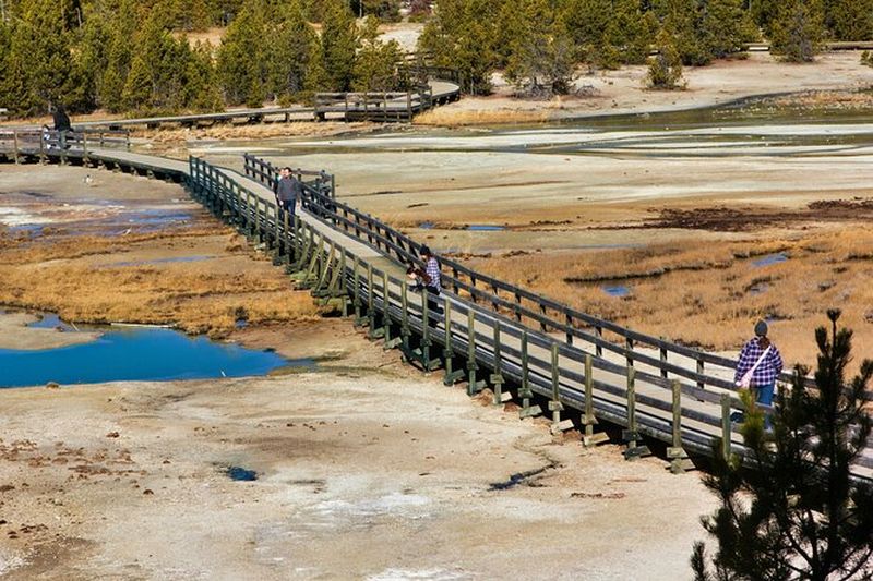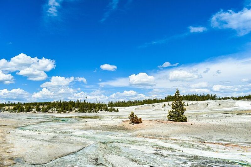 Norris Geyser Basin est la zone la plus chaude et instable de Yellowstone. Elle abrite des sources acides et le Steamboat Geyser, le plus haut geyser actif au monde, capable de projeter l’eau à plus de 90 m. Les scientifiques ont constaté ici une forte activité sismique et des changements depuis les premières études menées en 1870. Ses bassins colorés et ses fumerolles témoignent de la puissance géothermique qui façonne ce paysage unique.
