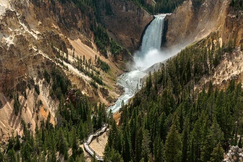 Le Grand Canyon de Yellowstone, formé sur des millénaires par l’érosion de la rivière Yellowstone, regorge de panoramas. Ses falaises colorées, aux teintes rouges, jaunes et rosées, s’étendent sur environ 32 km de long. Artist Point, l’un des meilleurs points de vue, dévoile les chutes Lower Falls hautes de 94 m. Depuis la découverte du canyon en 1869, les visiteurs admirent la puissance de la nature qui façonne ces gorges.