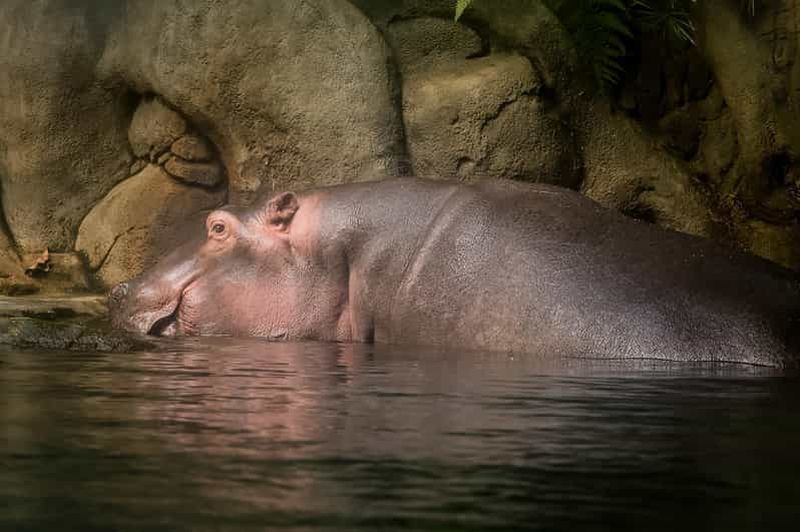 Le Pavillon des Hippopotames, ouvert en 2013, héberge des hippopotames du Nil dans un environnement aquatique adapté. Le bassin vitré permet une observation sous-marine de ces imposants herbivores, offrant aux visiteurs un spectacle rare. Un espace extérieur est aménagé pour leurs bains de soleil et leurs activités terrestres. Des panneaux explicatifs abordent le rôle écologique de l’espèce et la nécessité de la protéger. Les repas publics suscitent l’émerveillement des spectateurs.