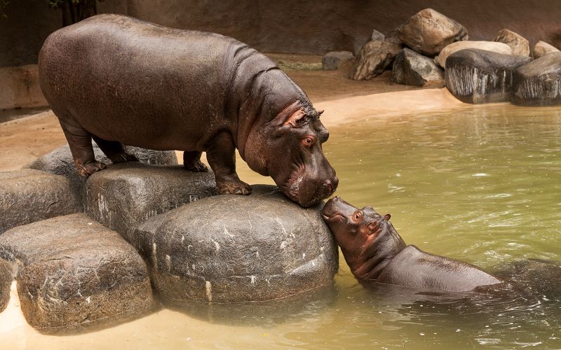 Inaugurée en 1970, la Maison des hippopotames héberge ces imposants herbivores au mode de vie semi-aquatique. Un grand bassin intérieur leur permet de se rafraîchir et de nager, tandis qu’un espace extérieur offre de larges zones de repos. Vous pourrez observer leur fascinant comportement social, notamment leurs interactions. Le Zoo de Varsovie organise parfois des présentations mettant l’accent sur les défis de la conservation et l’importance de protéger leurs habitats.